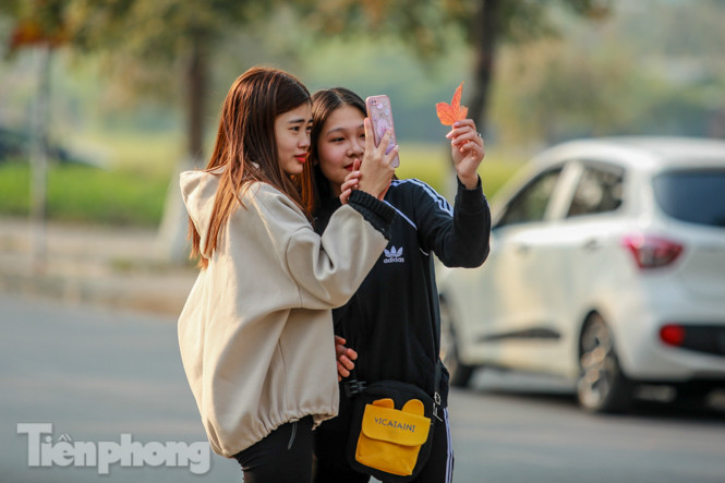 Những chiếc lá phong chuyển màu đỏ hấp dẫn các bạn nữ.