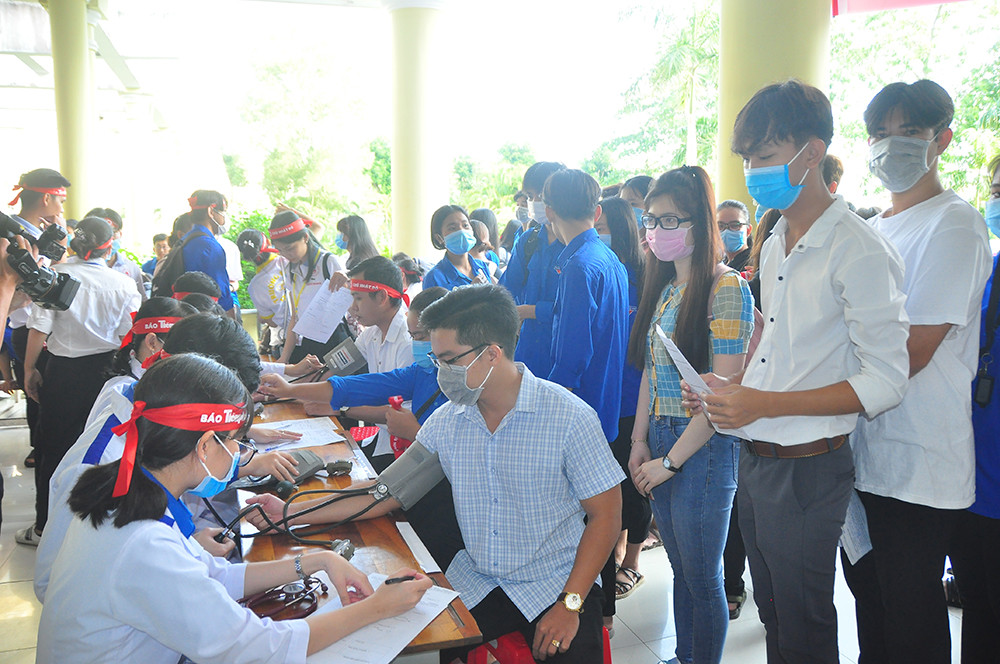 Từ sáng sớm, nhiều bạn sinh viên đã có mặt tại sảnh của trường Đại học Trà Vinh với không khí hào hứng, sôi nổi để chia sẻ giọt máu của mình.