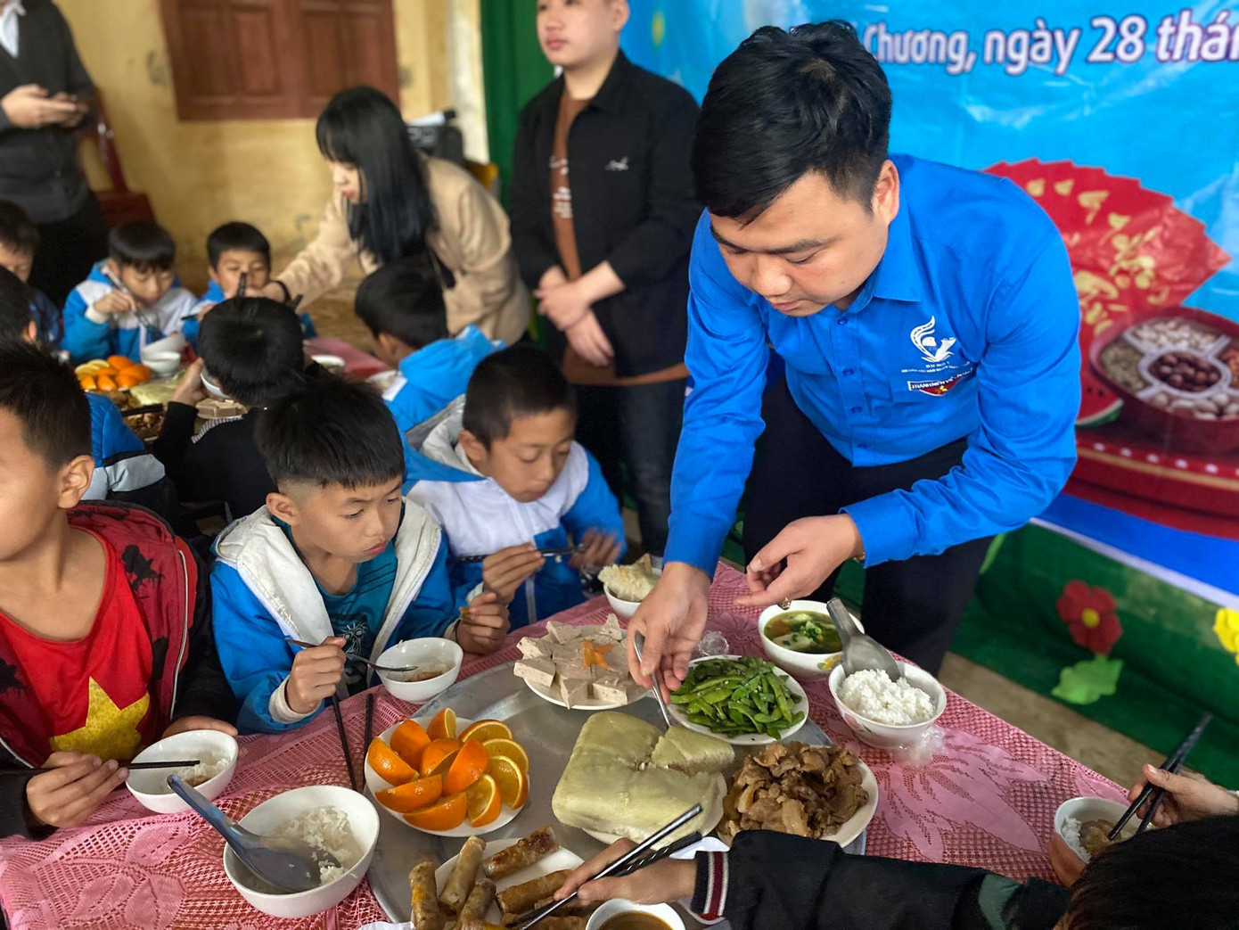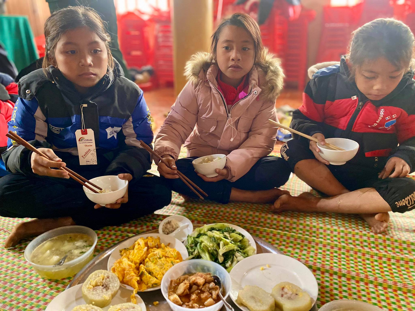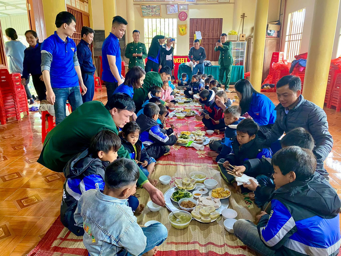 Bữa cơm tất niên cho 30 em học sinh dân tộc Đan Lai tại bản Tân Sơn và bản Cửa Rào, xã Môn Sơn, huyện Con Cuông.