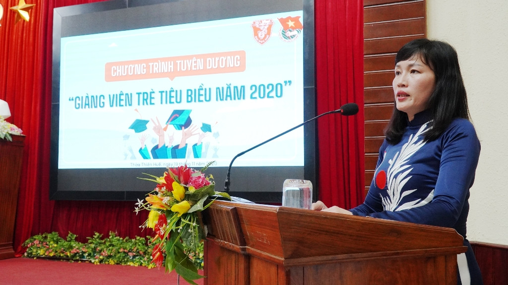 Phát biểu chúc mừng 18 gương mặt giảng viên tiêu biểu được tuyên dương trong dịp kỷ niệm ngày Nhà giáo Việt Nam 20/11, tiến sĩ Đỗ Thị Xuân Dung, Phó Giám đốc Đại học Huế, bày tỏ mong muốn đội ngũ giảng viên trẻ tiếp tục phát huy năng lực, sở trường và có nhiều cống hiến cho phát triển của Đại học Huế và các đơn vị thành viên; tích cực tham gia phát triển tổ chức Đoàn, Hội vững mạnh; tiếp tục giúp đỡ, dìu dắt các thế hệ tiếp theo và đặc biệt là truyền ngọn lửa thành công, trở thành những hình tượng mẫu mực, tấm gương tự học và sáng tạo, lan tỏa đến toàn thể đoàn viên, thanh niên, sinh viên Đại học Huế.
