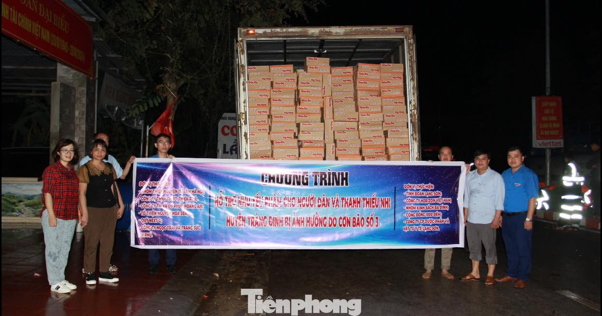 Tối 9/9, vượt qua khó khăn về thời tiết, đường sá khó đi, đoàn công tác do anh Lăng Văn Chí - Phó Bí thư Thường trực Tỉnh Đoàn làm trưởng đoàn với sự chung tay, giúp sức của nhóm thiện nguyện “Từ tâm Hà Nội” cùng các nhà hảo tâm, doanh nghiệp trong và ngoài tỉnh đã có mặt tại thị trấn Thất Khê, huyện Tràng Định tổ chức trao tặng nhu yếu phẩm như: mì ăn liền, bánh ngọt, nước uống... với tổng trị giá 80 triệu đồng cho người dân và thanh thiếu nhi trên địa bàn huyện Tràng Định bị ảnh hưởng của cơn bão số 3 (Yagi).