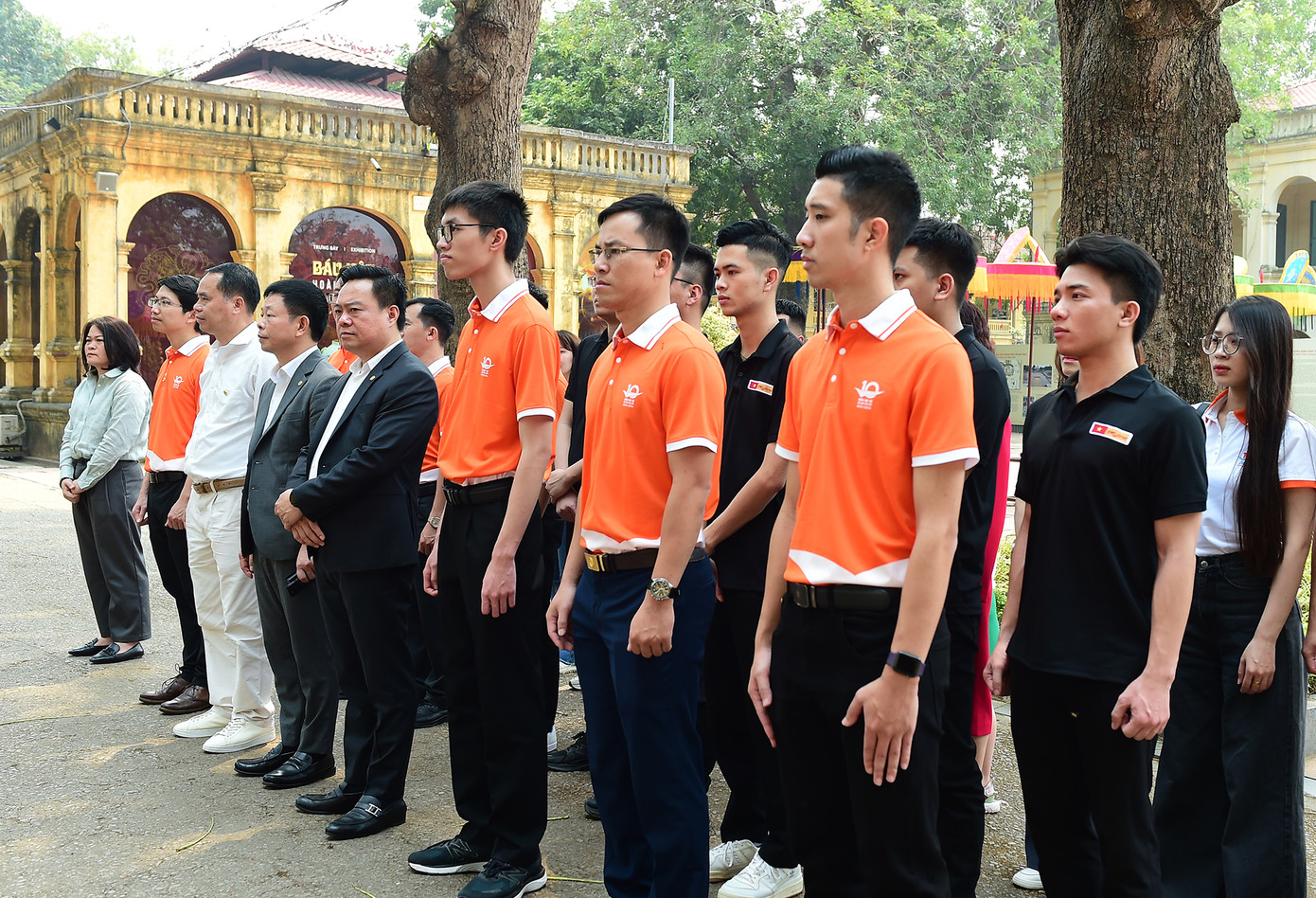 | Lãnh đạo Báo Tiền Phong, Quỹ Hỗ trợ Tài năng trẻ Việt Nam và các đại biểu Gương mặt trẻ Việt Nam tiêu biểu, triển vọng năm 2024 (áo cam) dâng hương tại Điện Kính Thiên. |