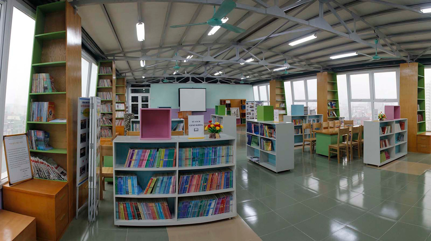 Thư viện có view cực ”thơ mộng” với những ô cửa kính trong suốt và còn có rất nhiều những đầu sách thú vị, hấp dẫn. (Ảnh: nbk.edu.vn)