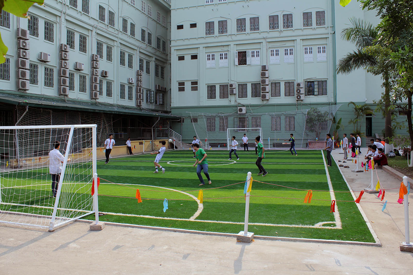 Sân bóng đá chính là nơi thỏa mãn niềm đam mê với trái bóng cho các bạn học sinh trong trường. (Ảnh: nbk.edu.vn)
