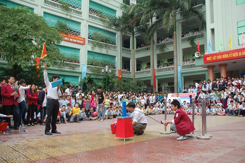Các bạn học sinh hào hứng tham gia cuộc thi Tên lửa nước, hoạt động được diễn ra thường niên thu hút sự tham dự của nhiều cá nhân và tập thể lớp trong trường. (Ảnh: Thầy Đạo)