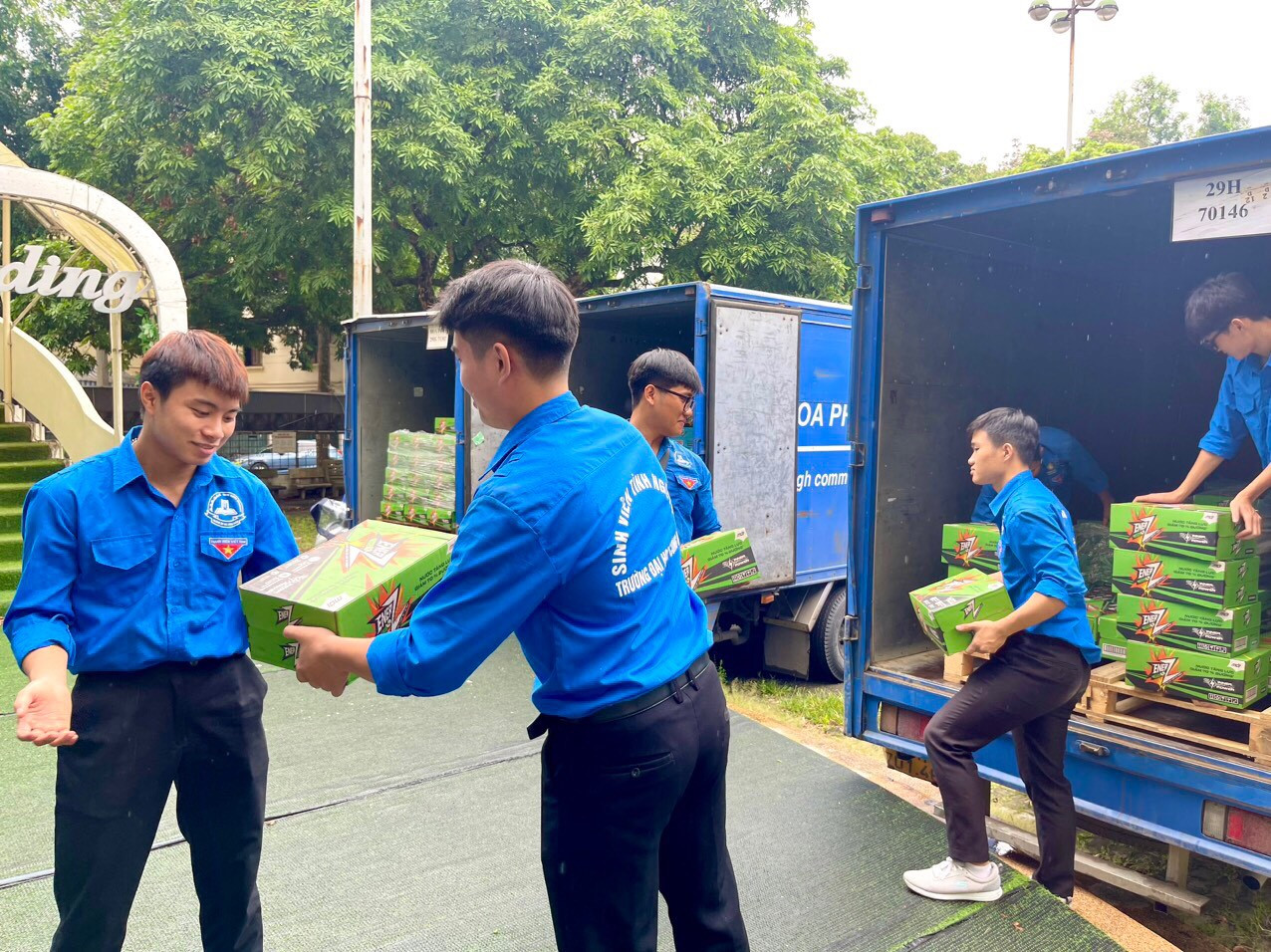 | Các tình nguyện viên tiếp nhận các vật phẩm phục vụ chương trình Tiếp sức mùa thi đợt 2 năm 2024 |