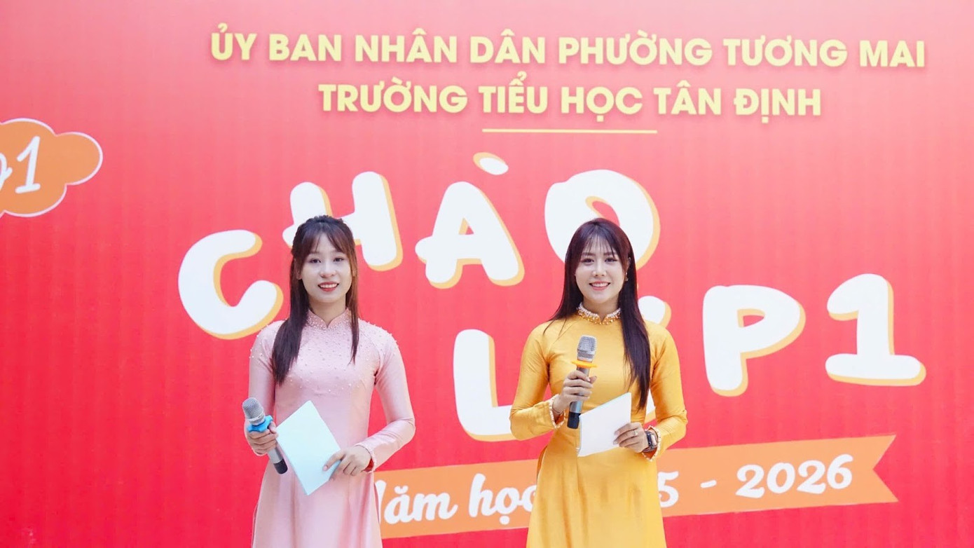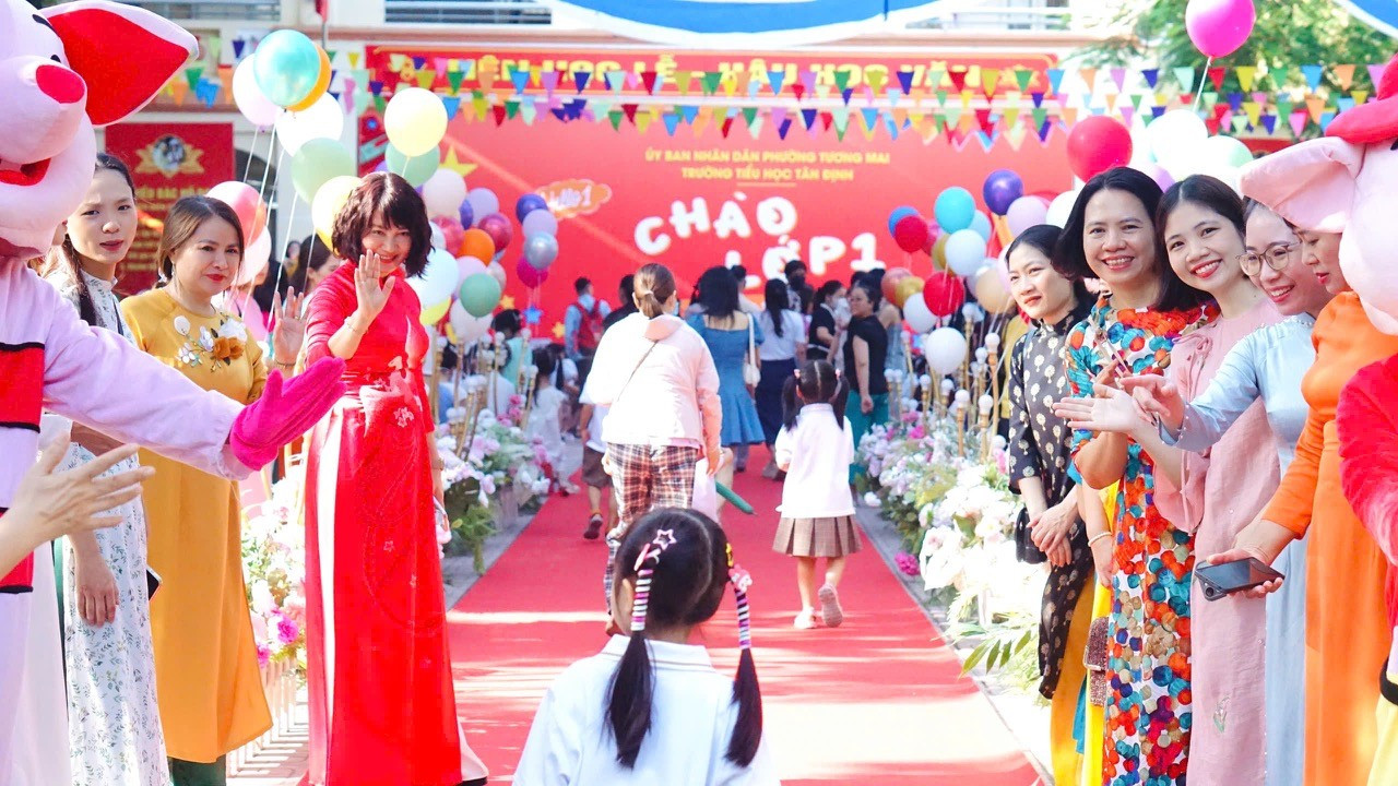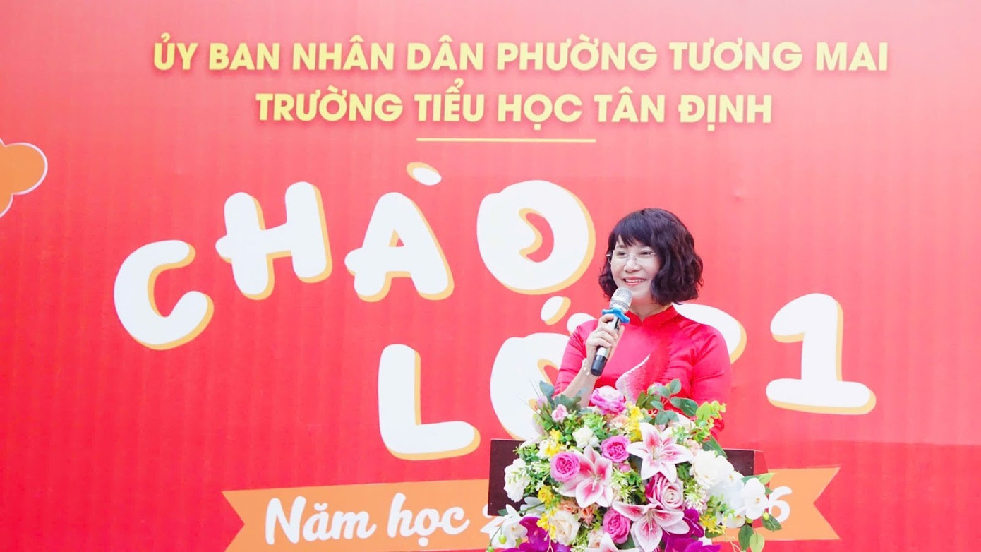 Để xoa dịu những lo lắng của những thiên thần nhỏ và cả các bậc phụ huynh, cô Hoàng Thúy Nga - Hiệu trưởng trường Tiểu học Tân Định gửi lời chào ấm áp: “Các con học sinh lớp 1 yêu quý. Thầy cô và các anh chị học sinh toàn trường đang rất vui mừng chào đón các con. Các con hãy ghi nhớ ngày này, ngày mà lần đầu tiên các con đến trường đi học. Bắt đầu từ đây sẽ mở ra trước mắt các con một chân trời mới thật đẹp đẽ, tươi sáng, mái trường Tiểu học Tân Định yêu quý sẽ chắp cánh cho những ước mơ của các con bay cao bay xa”.