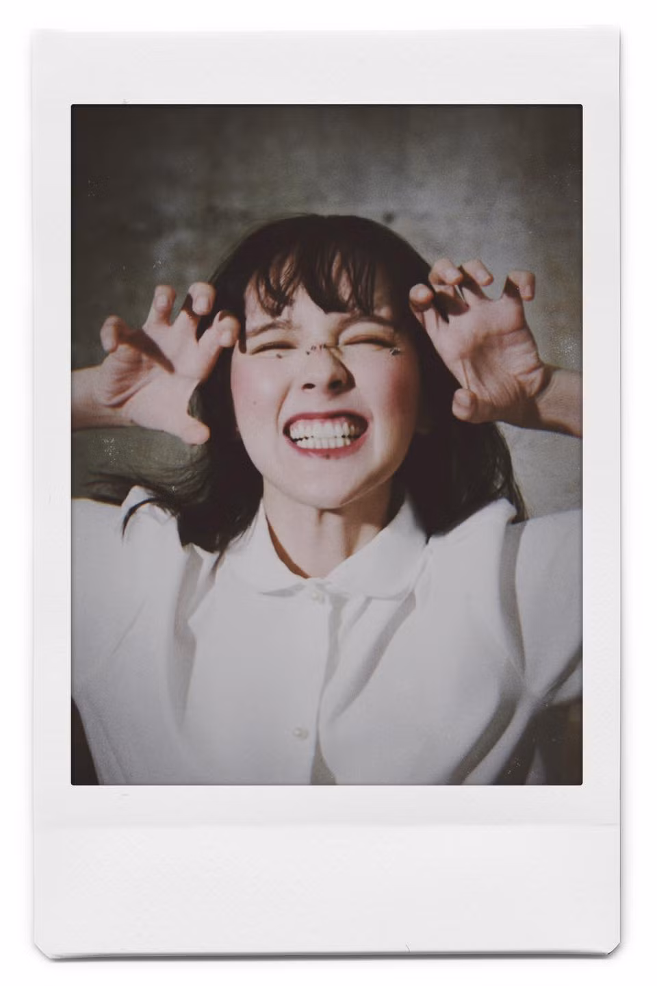 Ít ngày sau, Hải Tú tiếp tục "thả xích" tạo hình mới cực ngầu. Trong loạt hình chân dung giả film, sao nữ sinh năm 1997 mặc áo sơ mi trắng cài kín, trang điểm tông hồng. Nhiều phụ kiện bạc giả ở vị trí môi, mắt, mũi tạo điểm nhấn cho giao diện nổi loạn của Hải Tú.