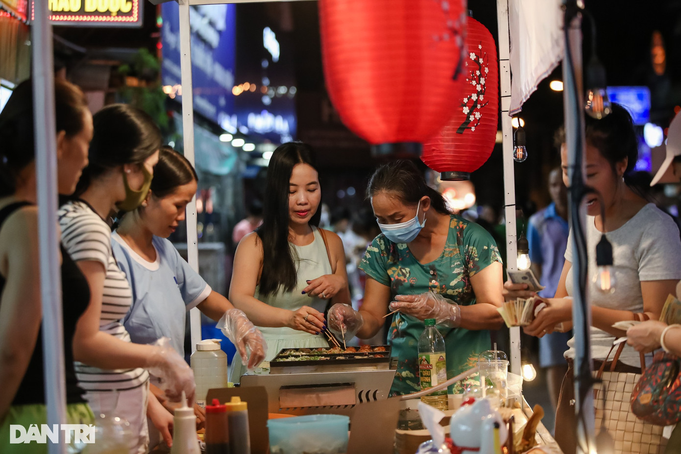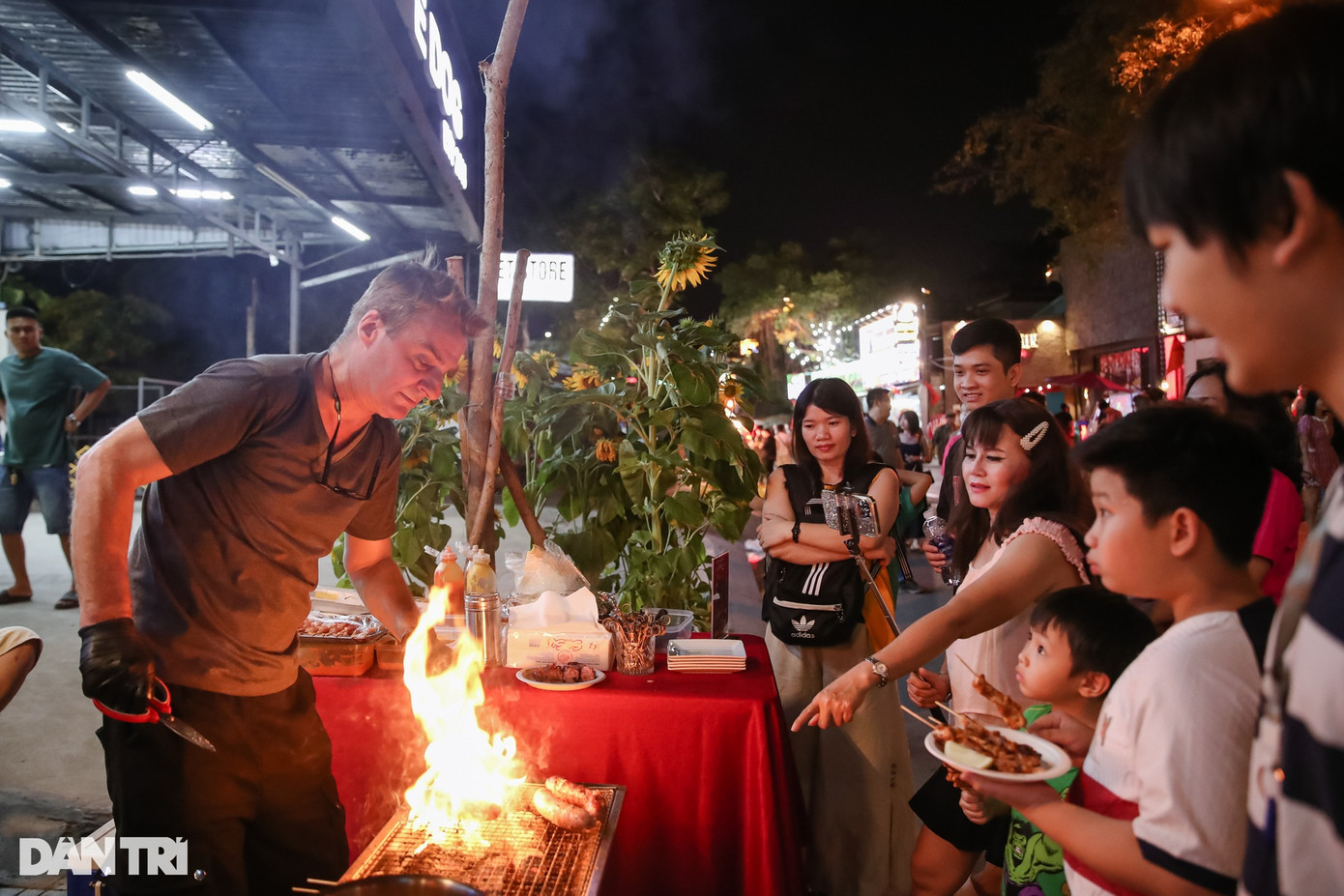 Du khách trải nghiệm làm bánh tại một gian hàng ở phố đêm Thảo Điền.