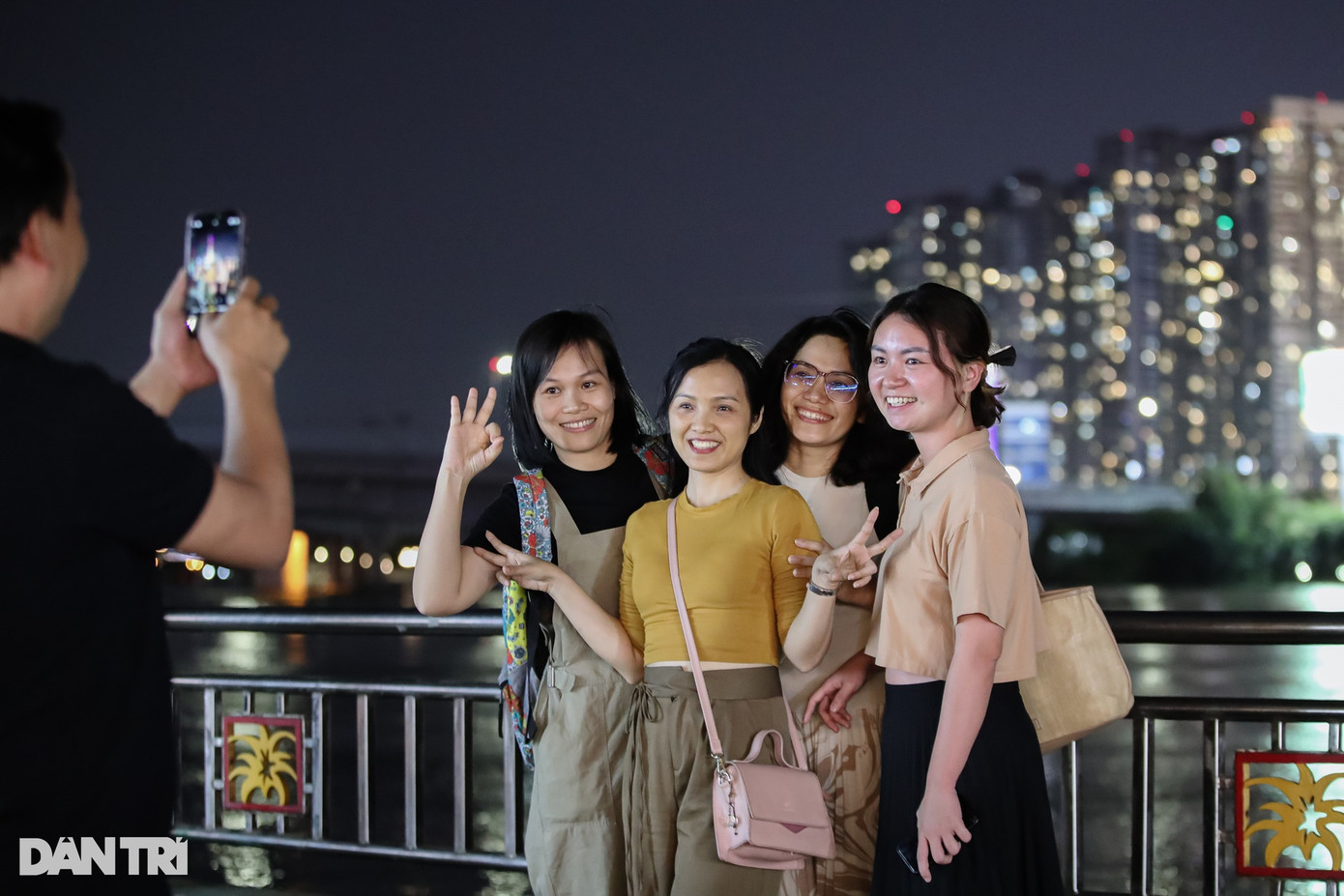 Theo ghi nhận của phóng viên Dân trí, rất đông người dân đã có mặt tại phố đêm Thảo Điền từ rất sớm để tham quan. "Nhìn khu phố nơi tôi sinh sống dần thay da đổi thịt, có thêm nhiều công trình công cộng phục vụ người dân như thế này thực sự tôi rất tự hào", bà Hoàng Thị Thanh Hà (59 tuổi, ngụ TP Thủ Đức) chia sẻ.
