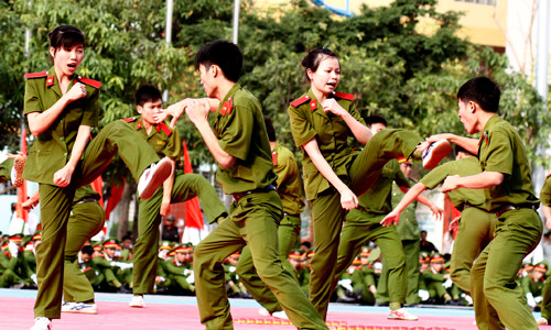 | Trong các màn trình diễn là sự tham gia của nữ học viên - những bông hoa thép. |