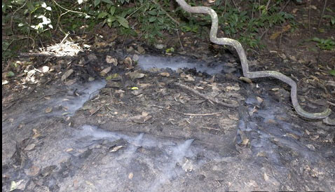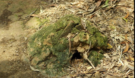 Lỗ thông hơi làm bằng ống tre và cải trang như một gò mối.