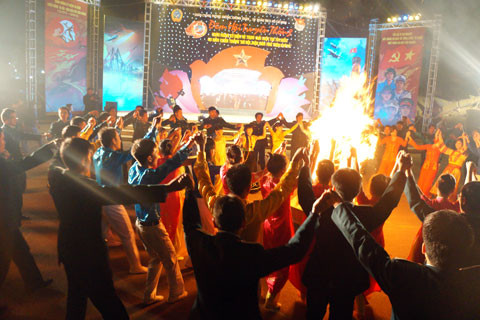 Đêm hội diễn ra sôi nổi, hoành tráng với các ca khúc cách mạng, chương trình Tuyên truyền viên trẻ về chiến thắng “Hà Nội – Điện Biên Phủ trên không”, màn lửa trại truyền thống…