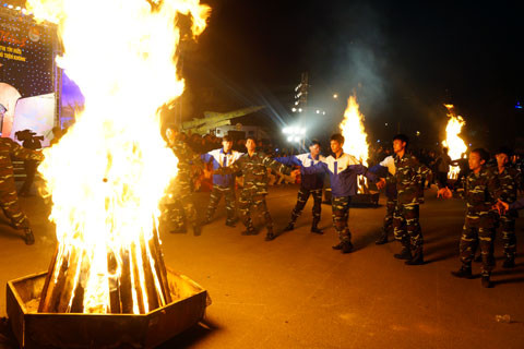 | Anh Dương Văn An - Bí thư T.Ư Đoàn thắp lửa trại cho đêm hội. |