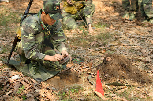 | Thực hành luồn thuốn kiểm tra bẫy xung quanh mìn. |