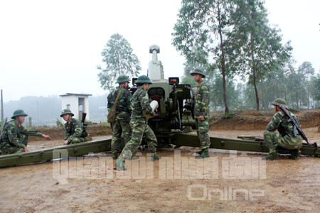 Sáng đầu năm, mưa rơi nặng hạt, sương mù giăng trắng đất trời, song không khí luyện tập vẫn rất sôi động trên thao trường của Lữ đoàn pháo binh 168 (Quân khu 2).