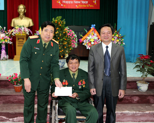 | ... và ân cần thăm hỏi, tặng quà từng thương bệnh binh. |