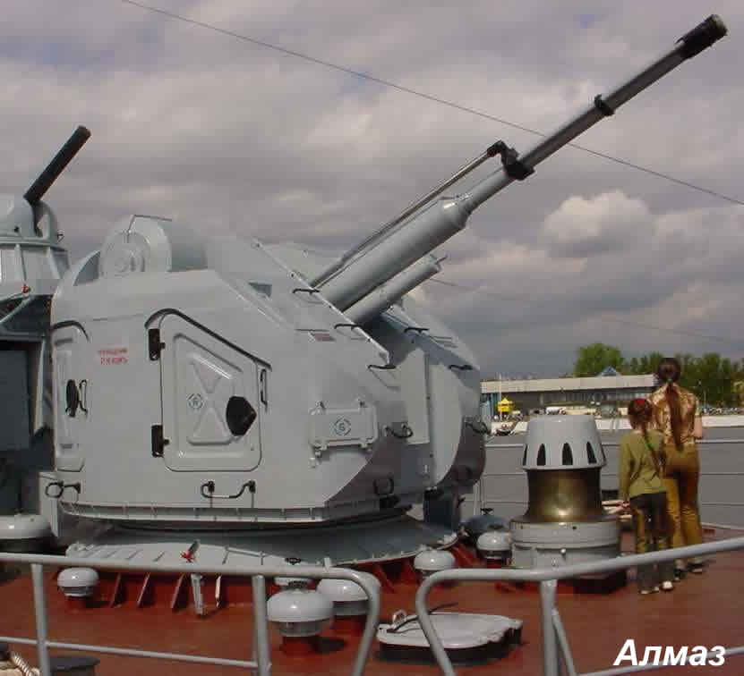 | (Project 10412) | Pháo hạm Pháo hạm АК-306М cỡ nòng 30 mm – 2 hai ụ pháo hạm, cơ số đạn là 2000 viên đạn cho mỗi ụ súng và 1000 viên dự trữ. Hệ thống điều khiển hỏa lực SP – 521 Racurs bảo đảm tự động bám mục tiêu và điều khiển hỏa lực. Đồng thời có thể trang bị hệ thống quang ảnh Garnhizon – 5. Để điều khiển bắn bán tự động từ xa, đã được lắp đặt 2 bộ điều khiển "Kolonka – 219-1” Hỏa lực bắn thẳng. Trên tầu có thể lắp súng máy phòng không loại 14,5mm hai hệ thống ụ súng loại MPTU, cơ số đạn là 5000 viên cho mỗi ụ súng. Vũ khí cá nhân và cơ số đạn nằm trong các hộp chứa đặc biệt dạng hình tháp. Ngoài ra, dự án 10412 là phiên bản xuất khẩu của dự án 10411, được chế tạo mẫu dành cho xuất khẩu, Almaz chỉ sản xuất có một phiên bản có lắp hệ thống tên lửa chống tầu Uran- E X- 35 với tầm bắn xa 130 km. 8 ống phóng tên lửa mỗi bên. Sử dụng radar dẫn đường và điều khiển hỏa lực Garpun-Bal. |