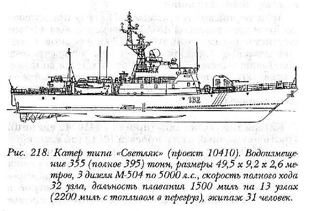 | (Project 10410) | Pháo hạm Để tấn công các mục tiêu trên không, trên biển và bờ biển, tầu được trang bị pháo hạm tự động: Pháo АК-176М cỡ nòng 76,2 mm, cơ số đạn - 152 viên Pháo АК-630М cỡ nòng 30 мм, cơ số đạn - 3000 viên Hệ thống điều khiển hỏa lực ra đa РЛС МР-123-02 (chế độ - tự động và dự phòng) Đối với súng АК-176М, ngoài chế độ tự động, có chế độ bắn tại chỗ bằng thiết bị К221А và VD221 trong ụ súng. Tên lửa phòng không Tầu có trong biên chế chính thức 16 hệ thống tên lửa phòng không vác vai loại Igla. Vị trí bắn tên lửa của xạ thủ có tay cầm và bệ tỳ lưng. Tên lửa được đặt trong các thiết bị chứa đạn giảm xóc. Vũ khí chống tầu Trên tầu có lắp hai hệ thống phóng ngư lôi ОТА-40А-2 với hệ thống điều khiển phóng SU-406. Chống người nhái hoặc xuồng đổ bộ, bộ binh. Súng phóng lựu МRG-1 hoặc DP – 64 . |
