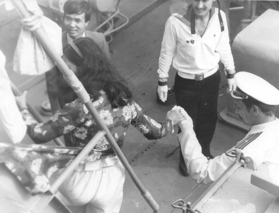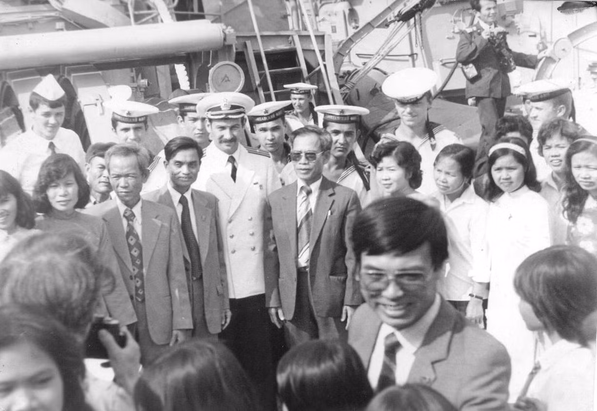 | Tháng 4.1979, cảng Cam Ranh, đoàn đại biểu Việt Nam thăm tàu hải quân Liên Xô. (lưu trữ của trung sỹ hải quân Bikinin Z.B.) . |
