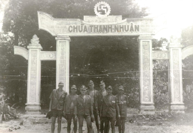Những người lính thuỷ Nga chụp ảnh kỷ niệm trước ngôi chùa Việt Nam