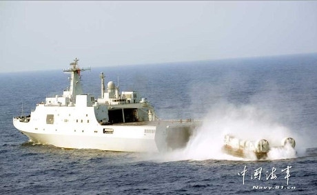 Đáng chú ý trong cuộc tập trận mô phỏng tình huống đổ bộ chiếm đảo, hải quân Trung Quốc đã sử dụng tàu đệm khí lớp Zubr mua của Ukraina. Tàu đổ bộ Zubr «Bò rừng » là tàu chạy trên đệm không khí lớn nhất thế giới. Zubr có khả năng chạy với tốc độ của xe ô tô trên hải trình 300 hải lý. Với tốc độ của một chiếc xe BMW nhanh chóng tiếp cận mục tiêu, Zubr có khả năng sử dụng hỏa lực trên boong tầu bắn cấp tập bao trùm cả một khu vực phòng thủ rộng lớn của đối phương và đổ bộ lực lượng lính thủy đánh bộ với cả xe tăng, thiết giáp.