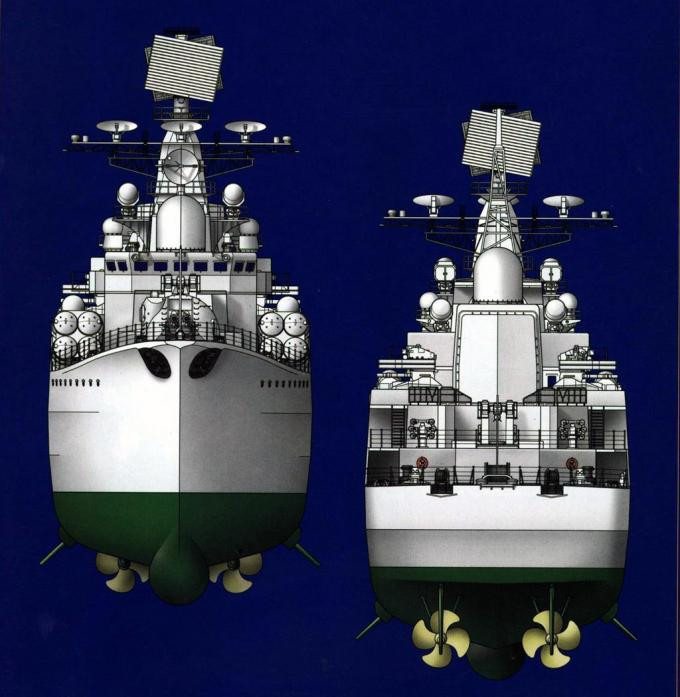 Lượng giãn nước 6500/7500 tấn.; Chiều dài/rộng/ngấn nước 164/17,2/9,5m; Động lực trạm nguồn 2 động cơ tuốc bin diesel х36300 mã lực + 2 động cơ diese phát điện х 4900 mã lực.; Vận tốc trung bình là 32 knots; Trang bị 4 bệ phóng х 4 ống phóng tên lửa chống tầu J-8-3; 2 bệ phóng tên lửa х1 tên lửa SHTIL 1 (48); pháo hạm 100-mm tự động; 2 bệ súng tự động x 7 nòng súng 30-mm; 2 bệ phóng х3 ống phóng ngư lôi chống ngầm; 2 bệ phóng đạn gây nhiễu х12 ống phóng đạn gây nhiễu; Máy bay trực thăng KA-28.