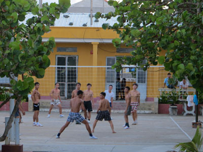 | Chiều xuống, lính đảo lại chơi bóng đá và bóng chuyền. |