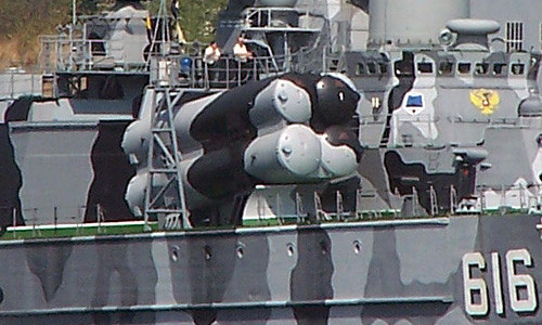 | Tên lửa Moskit trên tàu Molnya 'Tia chớp' 1241. |