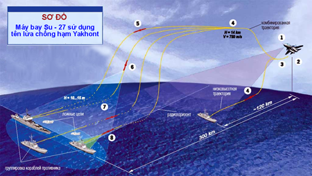 | Máy bay Su-27 phóng tên lửa diệt hạm Yakhont. |