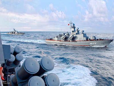 Trong tác chiến hiệp đồng quân binh chủng hải quân (phòng không - không quân, không quân hải quân, hải quân và bộ đội bảo vệ biển đảo) của thế trận phòng ngự. Do lực lượng nhỏ hơn so với đối phương, yếu tố bất ngờ được hình thành từ khả năng phòng ngự cơ động và chắc chắn trong một đội hình chiến đấu hợp lý. Các thê đội phòng ngự thường bao gồm có: Phòng không tầm xa, phòng không tầm trung, phòng không tầm gần và cận gần, phòng tuyến chống ngầm. Do vũ khí tấn công hiện đại chủ yếu là tên lửa hành trình các tầm bay và các tốc độ khác nhau, do đó, khả năng bảo vệ lực lượng phòng ngự trên biển và hải đảo chủ yếu dựa vào phòng không, chống ngầm và cơ động liên tục trong một đội hình tác chiến thống nhất. Đòn phản công đánh thiệt hại đối phương sẽ là các khinh hạm tên lửa có tốc độ cao như Molniya.