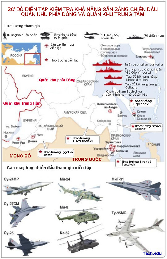 | Vừa kết thúc cuộc tập trận chung với Trung Quốc chưa đầy 12 giờ, Nga lập tức tổ chức tập trận với quy mô chưa từng có kể từ thời Xô Viết với nhiều thâm ý. |