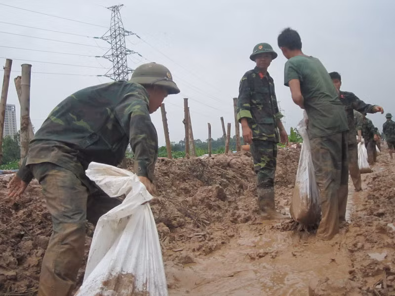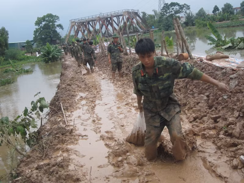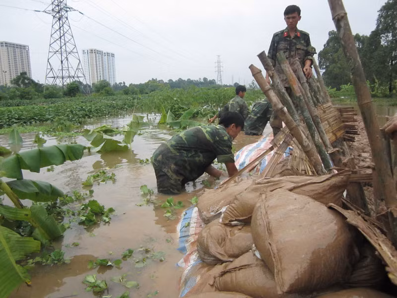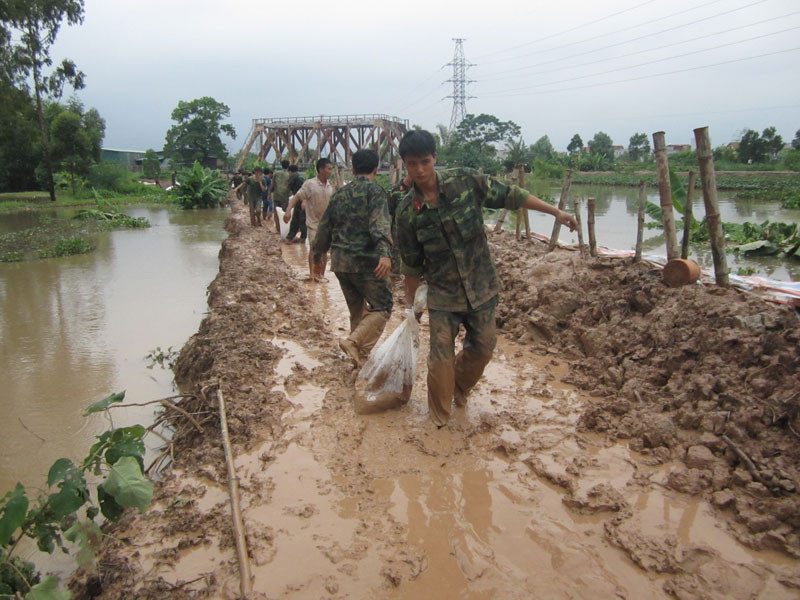 TPO – 3h sáng 9/8, hơn 350 bộ đội, dân quân cùng nhân dân nhận được lệnh từ Ban chỉ huy Phòng chống lụt bão đã đến Tây Mỗ (Hà Nội) để chống lụt nơi Sông Nhuệ chảy qua Cầu Sắt và cầu Ngà.