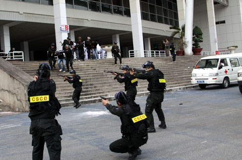 Dưới sự chỉ huy của Giám đốc Công an TP Hà Nội, lực lượng cảnh sát cơ động với kỹ, chiến thuật điêu luyện và được trang bị vũ khí hiện đại, đã tiếp cận khu vực bọn khủng bố chiếm giữ từ nhiều hướng; đột nhập vào trong tòa nhà, tấn công kiên quyết, khống chế kịp thời bọn khủng bố; giải cứu các con tin.