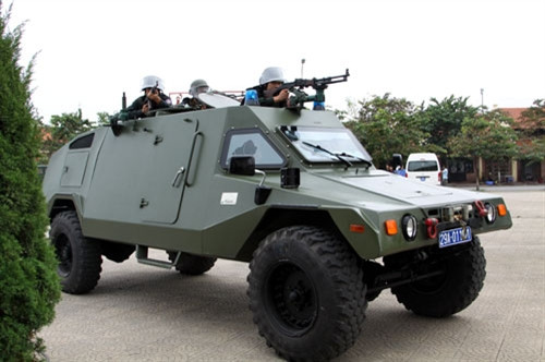 Cảnh sát 113 cùng xe bọc thép tiếp cận tòa nhà bị bọn khủng bố chiếm giữ .