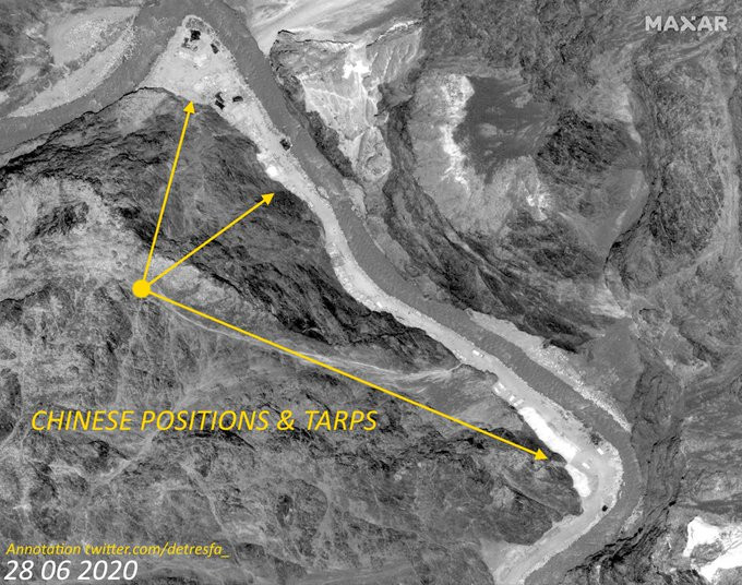 Ảnh vệ tinh ngày 28/6 cho thấy các vị trí đóng quân của Trung Quốc.