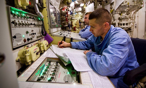 "Khi bước vào khoang động cơ, mọi người đều cảm nhận được tiếng ồn điếc tai và mùi dầu diesel. Nói chuyện bình thường là việc bất khả thi, tất cả phải hét lên để người bên cạnh có thể nghe rõ. Đó không phải điều bất ngờ, khi trong khoang là hai máy phát diesel với tổng công suất 3.000 KW, cung cấp năng lượng cho động cơ đẩy 5.500 mã lực và mọi hệ thống điện trên tàu", Stanavov cho biết.