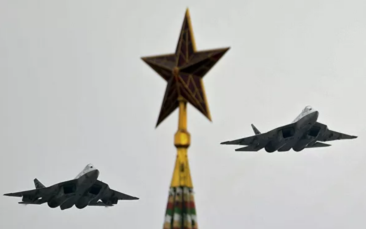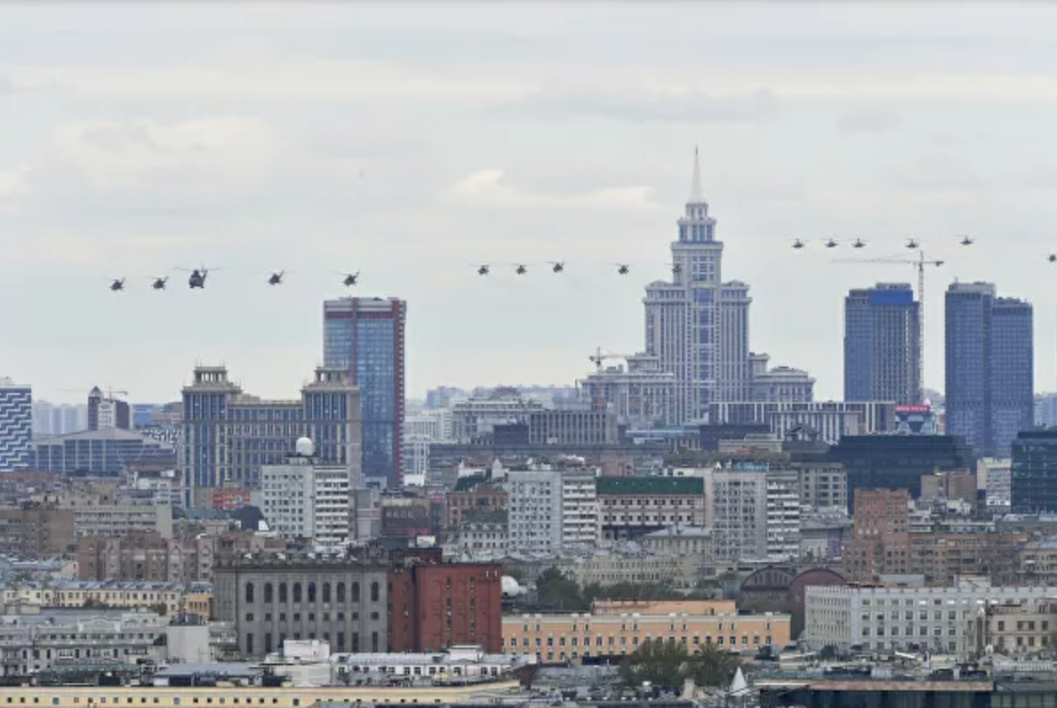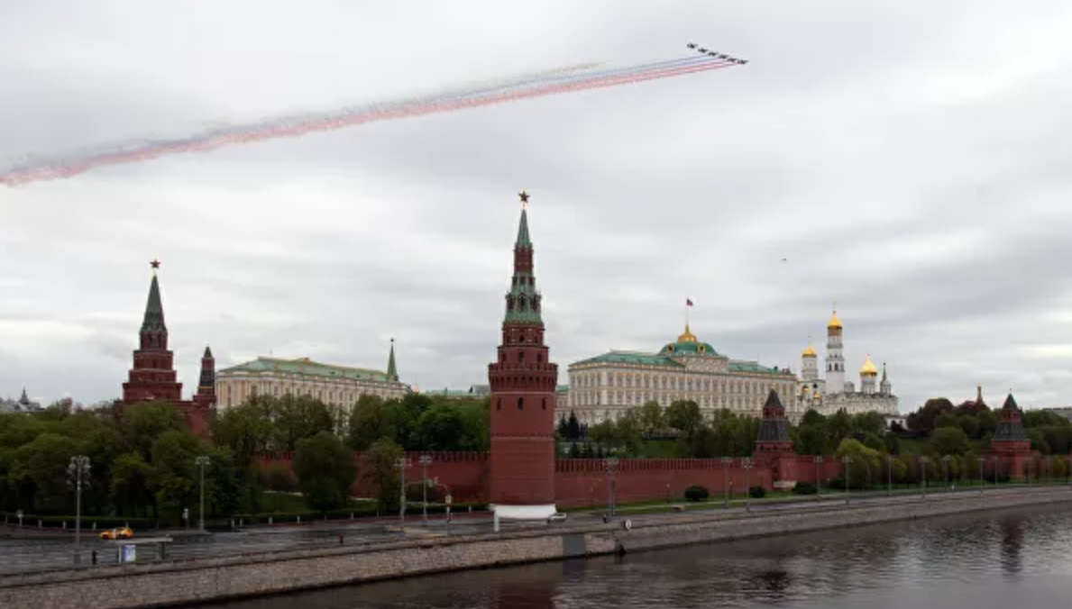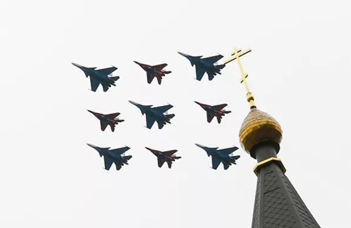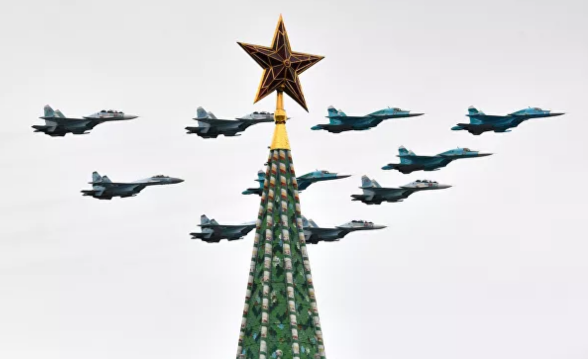 Tại thủ đô Moscow, 75 máy bay và trực thăng chiến đấu đã cùng bay qua Quảng trường Đỏ. Ảnh: RIA