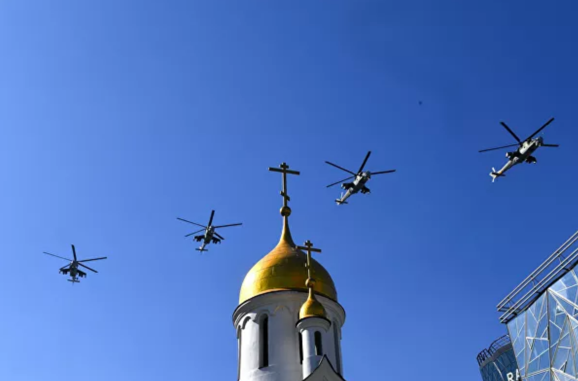 tTrực thăng Mi-8 trong cuộc diễu hành trên không ở Chita (Nga). Ảnh: RIA