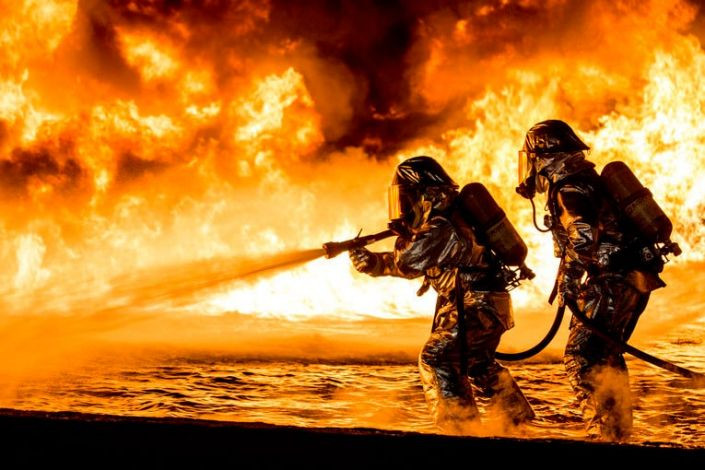 Hai binh sĩ của lực lượng Hải quân Mỹ diễn tập dập lửa tại Okinawa (Nhật Bản) ngày 25/1.