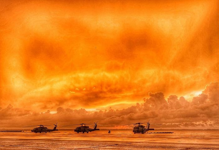 Ba chiếc trực thăng MH-60R Sea Hawk bay đúng lúc mặt trời mọc trên sông St. Johns ngày 13/6.