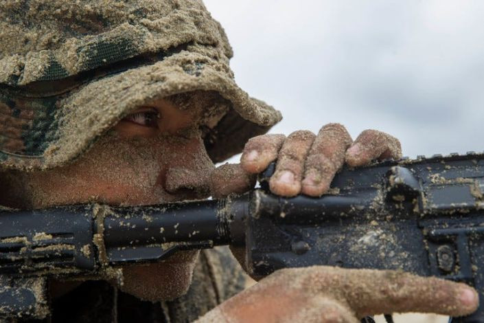 Lính thủy quân lục chiến tập tại Khu huấn luyện Pōhakuloa, Hawaii, ngày 9/5.