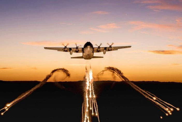 Một chiếc C-130 của Lực lượng Phòng vệ Quốc gia Không quân bang Wyoming bắn pháo sáng trong nhiệm vụ huấn luyện ngày 24/9.