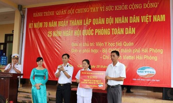 Với vai trò đồng hành với hành trình “Quân đội chung tay vì sức khỏe cộng đồng”, Tập đoàn Viễn thông Quân đội đã đảm bảo một phần kinh phí cho hành trình. Các nội dung Viettel trực tiếp hỗ trợ là đáp ứng kinh phí mua trang bị, vật tư y tế trao tặng cơ sở y tế và cơ sở quân dân y; chi phí thuốc men hỗtrợ bệnh nhân tham gia khám bệnh, quà tặng gia đình chính sách.