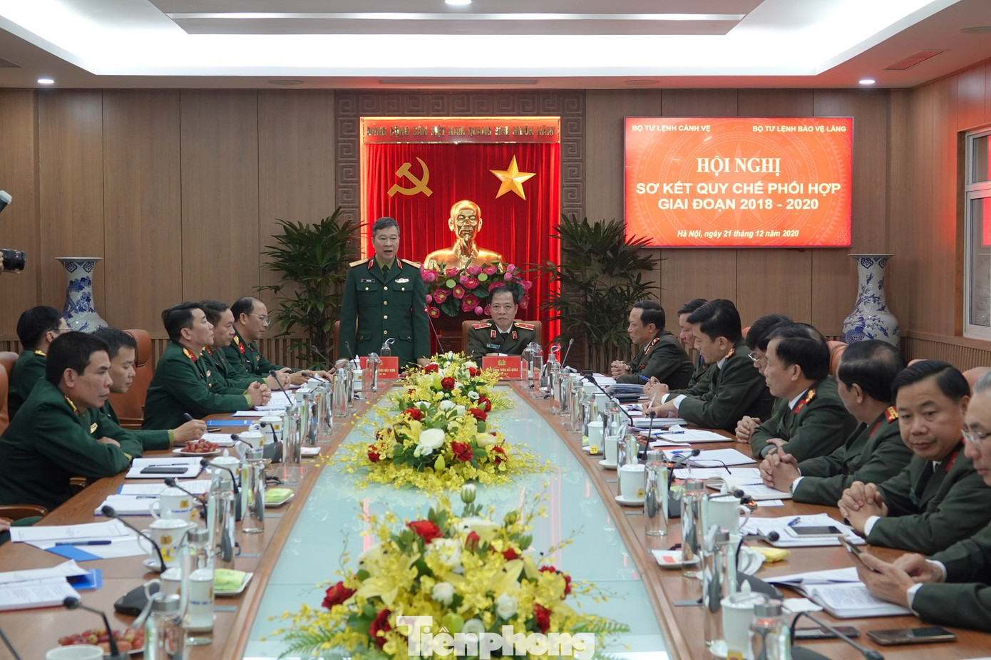 Thiếu tướng Bùi Hải Sơn, Quyền trưởng Ban Quản lý Lăng, Tư lệnh BTL Bảo vệ Lăng phát biểu tại hội nghị