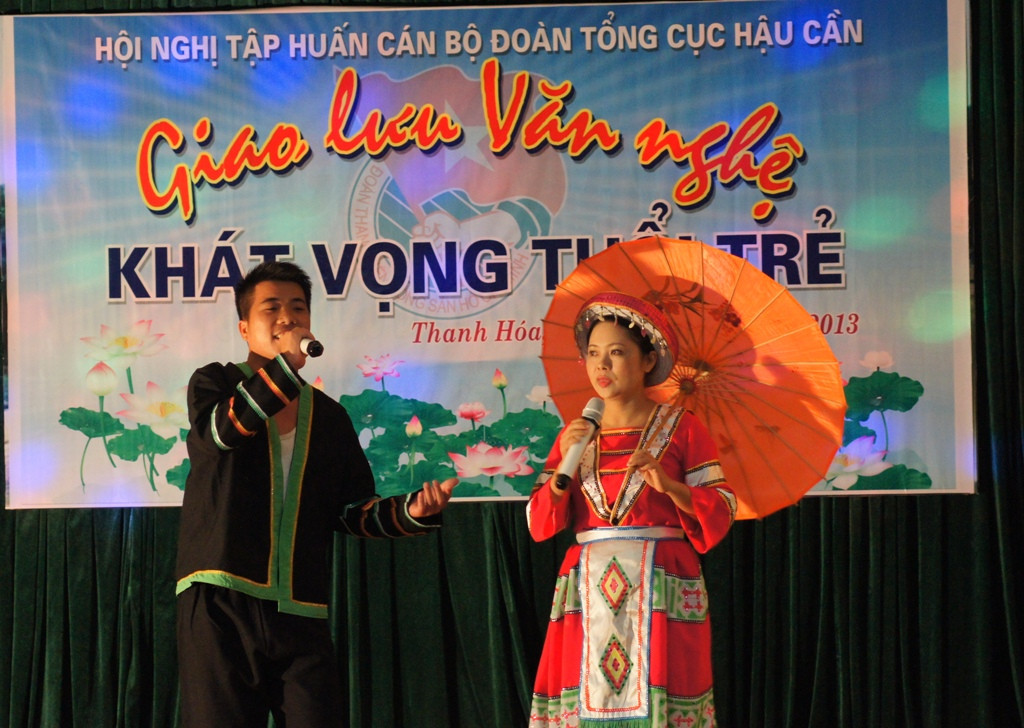 | Chương trình giao lưu văn nghệ Khát vọng tuổi trẻ tại hội nghị. |