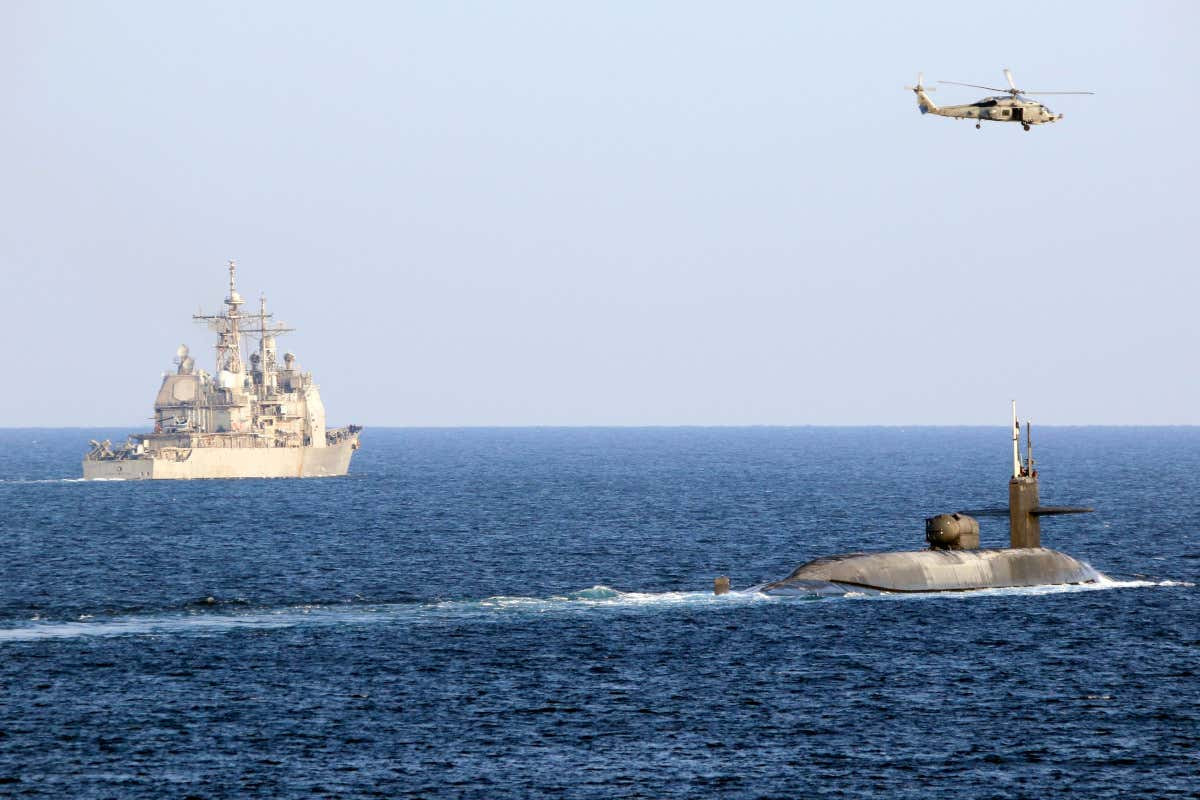 "Tàu ngầm tên lửa dẫn đường lớp Ohio USS Georgia (SSGN 729) chạy bằng năng lượng hạt nhân, cùng các tàu tuần dương tên lửa dẫn đường USS Port Royal (CG 73) và USS Philippine Sea (CG 58), đã đi qua eo biển Hormuz để tiến vào Vịnh Ả Rập," Hải quân Mỹ cho biết trong một tuyên bố.