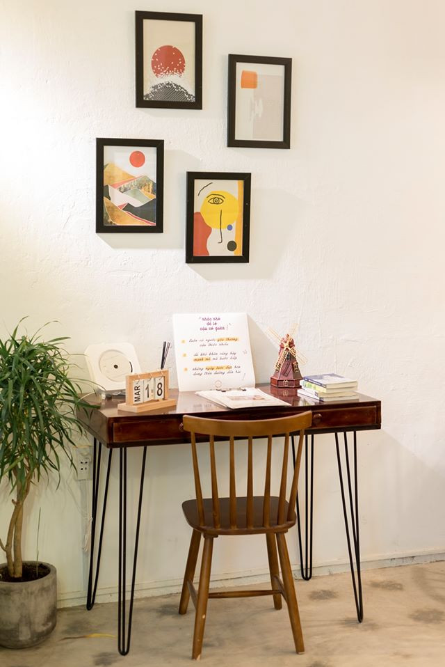Không gian bên trong Nắng nhỏ nhắn và gọn gàng với rất nhiều đồ dùng thân thiện với môi trường. Sau một ngày mệt nhoài, bạn có thể nằm dài trên chiếc sofa, ngắm ánh nắng đan qua từng kẽ lá, và thư thả nhấp một ngụm trà.