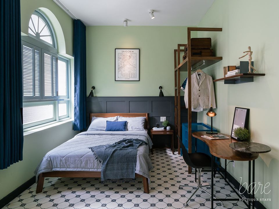 Không gian của homestay khá hài hòa với dáng vẻ xưa cũ của căn chung cư. Mỗi căn phòng của Bare đều chứa đựng một phong cách riêng biệt từ hiện đại (phòng Sài Gòn Ơi) cho đến retro (phòng Huế Thương, phòng Hà Nội Phố).