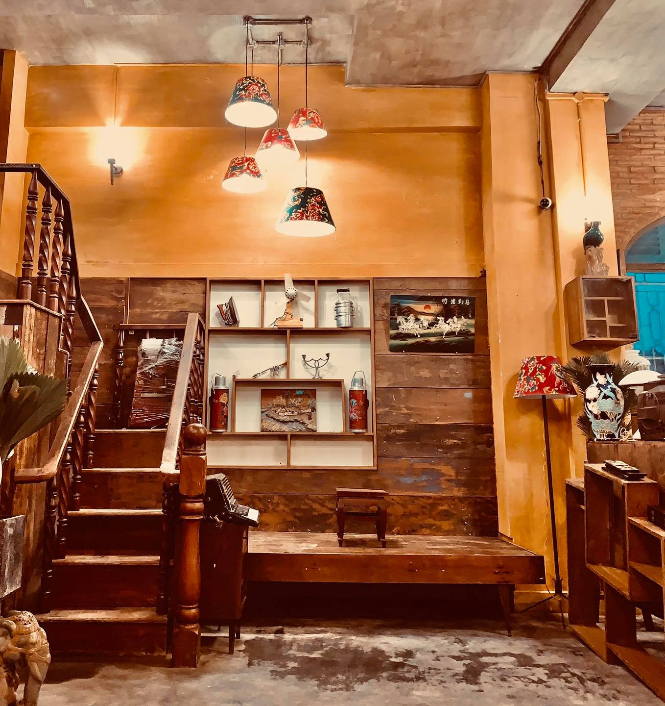 Bạn sẽ lập tức ấn tượng bởi “mặt tiền” rộng thênh thang với view ở vị trí đắc địa trung tâm Quận 1. Ánh đèn vàng ấm áp rực rỡ cả một góc đường. Cánh cửa gỗ in màu thời gian, bên trong đậm chất Sài Gòn xưa với những vật trang trí đắt giá: Những bức tranh sơn mài, đèn bão, bàn ủi, chiếc tivi nhỏ xíu hồi xa xưa, phích nước Rạng Đông, quạt máy cũ kĩ,… Bạn có thể chọn ngồi ở băng ghế gỗ dài, ghế đẩu nhỏ hoặc "sập gụ".